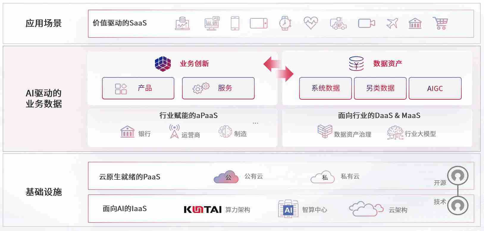 数字时代,,,,围绕企业数字化转型的关键要素,,凯旋娱乐数码开创性的提出数云融合战略和技术体系框架,,着力在云原生、、数字原生、、、、AI原生和信创产业上架构产品和服务能力,,,为处在不同数字化转型阶段的快消零售、、汽车、、金融、、医疗、、、政企、、、教育、、、、运营商等行业客户提供泛在的敏捷IT能力和融合的数据驱动能力,,构建跨界融合创新的数字业务场景和新业务模式,,,,助力企业级客户建立面向未来的核心能力和竞争优势,,全面推动社会的数字化、、、、智能化转型升级。。。。